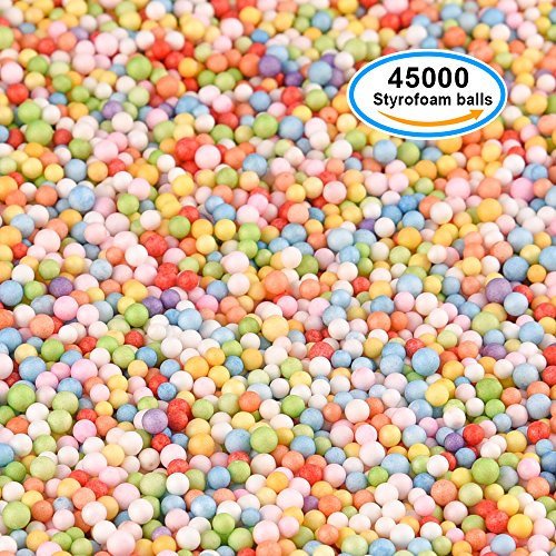 Kuuqa Colorful Mini Foam Balls Small Styrofoam Balls Micro Foam Beads for Slime 0.08-0.15 Inch Wedding Party Art Craft Decoration Accessiores, 3 Packs (45000 Balls in Total)