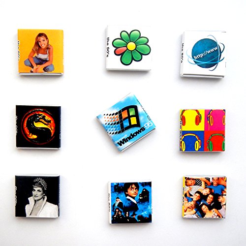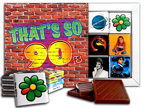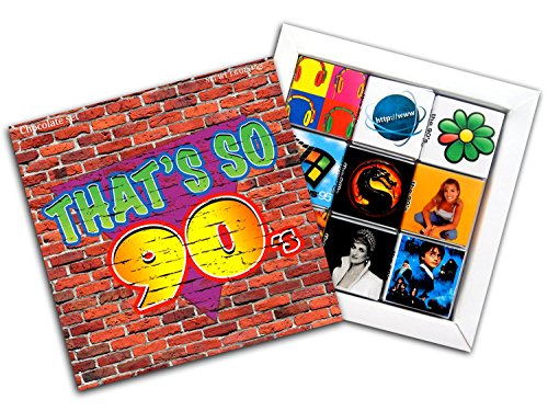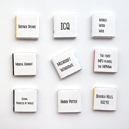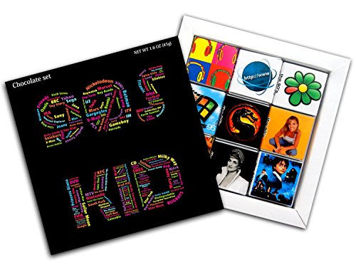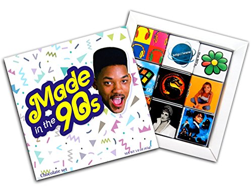 -. Feature : Pieces of chocolate made from high-quality raw. / Gift set has a MAGNET on it's backside so you can hang it on your fridge. / Each of the 9 wrappers contains one of the most important events and things of the 90s / The first MP3 player, the MPMan, World Wide Web, ICQ, Harry Potter / Diana, P.R.Incess of Wales, Beverly Hills 90210, Britney Spears, Microsoft Windows, Mortal Kombat