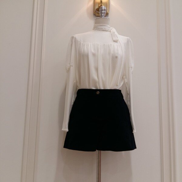 고급스럽고 섬세한 자카드 원단에 복고풍의 소매실루엣과 타이가 포인트인 로맨틱한 블라우스 입니다. 스커트, 슬랙스 모두 코디 가능합니다.