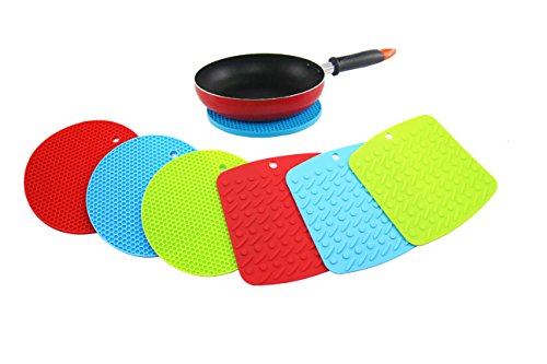 - Title : ★6 Pack/2 Kinds Hot!★ Anfimu Multi Color Silicone Pad Holder, Trivet Mat, Jar Opener, Spoon Rest and Garlic Peeler - Round Honeycomb & Square - Non Slip, Flexible, Durable, Dishwasher Safe, Heat Resistant Coasters Cup Insulation Mat
