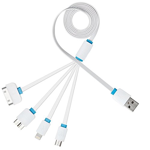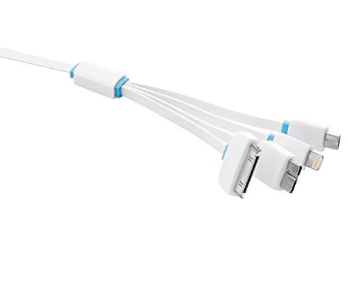 Saika 4IN1USB02 4-in-1 Multi USB Charging Cable Connector for iPhone 6,5,5S, Micro USB for Samsung Galaxy S4,S5,S6-Note 3 & Most Smart Phones, White