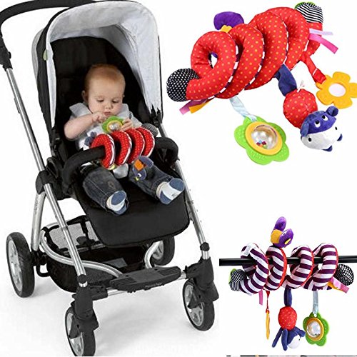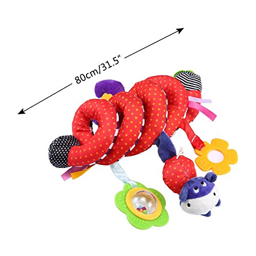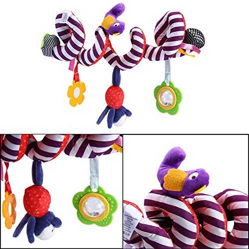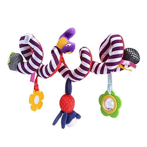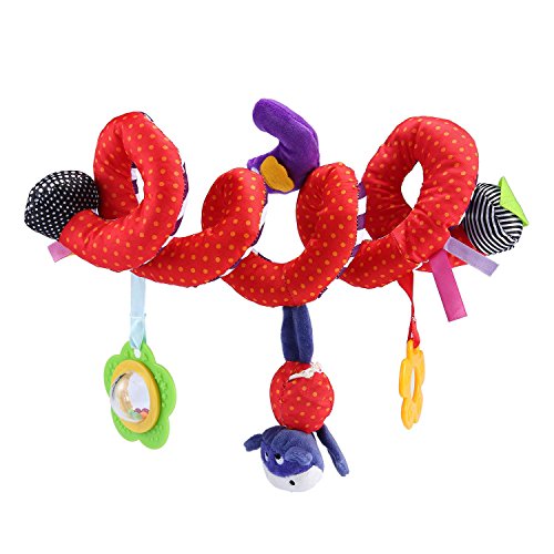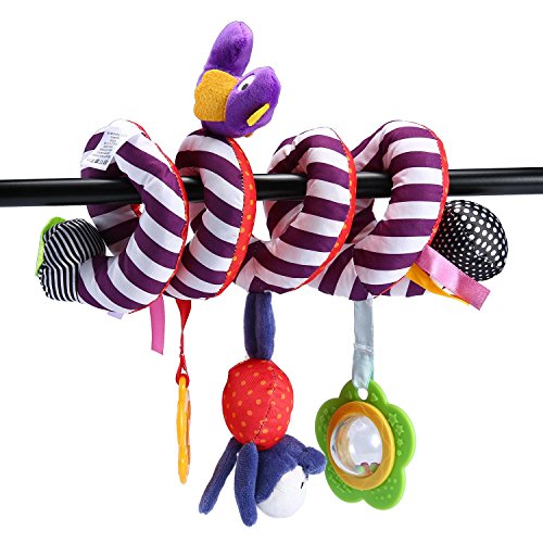 Spiral shape attaches easily to strollers, cribs, and car seats.