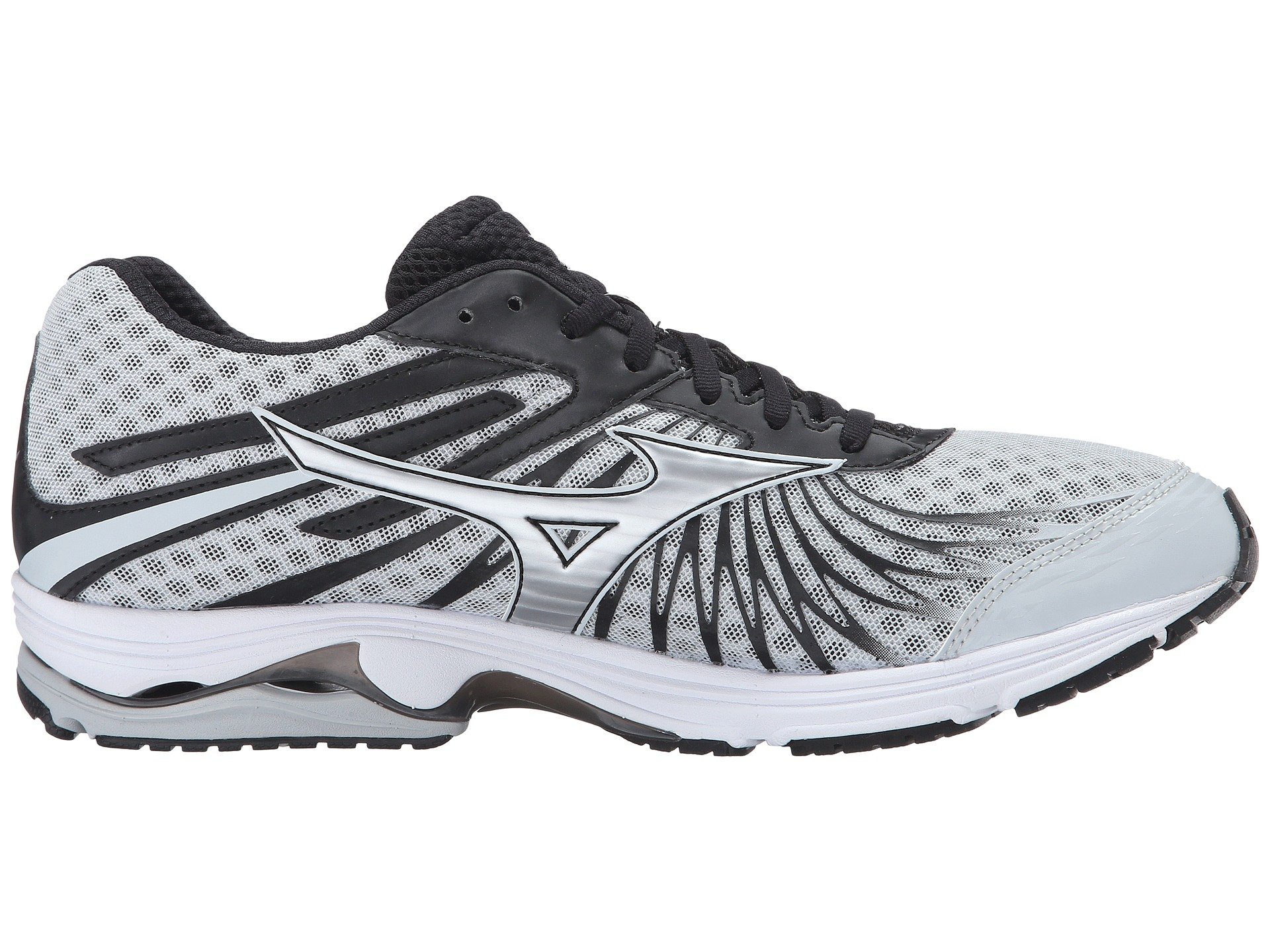 | Product Information SKU: #8992910Peace out and put the miles behind you when you hit the pavement in the Mizuno? Wave Sayonara 4 running shoe!Support Type: Neutral to underpronation (supination).Cushioning: Lightweight, flexible response. Surface: Road.Differential: 10 mm. Breathable mesh and synthetic upper materials. Printed forefoot overlays promote a performance fit and feel. Lace-up closure.Padded tongue and collar.Breathable fabric lining. Removable foam insole.Soft, responsive U4ic midsole.Parallel Wave? in the heel provides just the right amount of cushioning and stability.Soft blown rubber at the forefoot for durability, pressure distribution, and underfoot cushioning. X10™ carbon rubber through the heel and toe for supreme traction and maximum durability.Asymmetrical forefoot flex grooves allow the foot to move more naturally.Imported. Product measurements were taken using size 11.5, width D - Medium. Please note that measurements may vary by size.Weight of footwear is based on a single item, not a pair.Measurements: Weight: 10 oz |