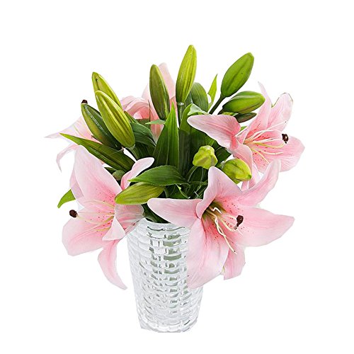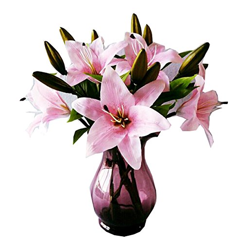 Haplain 5pcs New Silk Artificial Flower Lilies Bouquet 3 Heads Orchid Home Wedding Floral Decoration Valentine's Day Birthday Gift