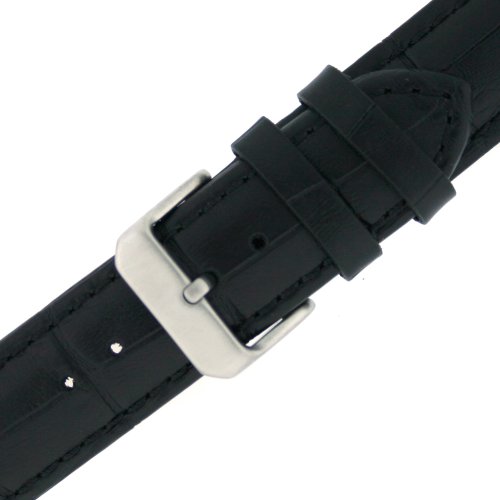 -. Feature : 18mm Extra Long Watch Band Black Genuine Calfskin Leather with Alligator Grain / Men's XL Length: 5" on Hole Side and 4" Buckle Side, Including Buckle- Watch Band 5mm Thickness / Strap is Calfskin Leather with Grain, Black with Matching Stitching / Pair of Stainless Steel SP.R.Ing Bars Included / Stainless Steel Polish Finish Heavy Buckle Hypoallergenic and Soft Leather Lining