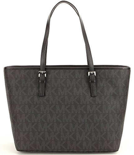 Michael Kors Jet Set Travel Top Zip Signature Logo Tote (Black)