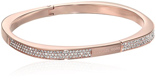 -. Feature : Polished bangle bracelet featuring logo plaque surrounded by sparkling pave-set rounds / Hinge closure / Imported