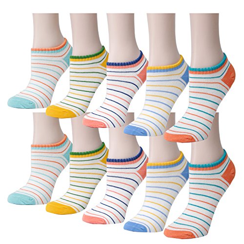 -. Feature : 78% Cotton,22% Spandex, which made the socks lightweight, breathable and durable. / 10 Pairs Value Pack, Colorful Patterns or Basic Solids as seen in the image / One Size (US 5-9) suitable for most of womens and girls. / Good Matching for Your Sneakers and any uniform, perfect for a season stock up / Machine Wash