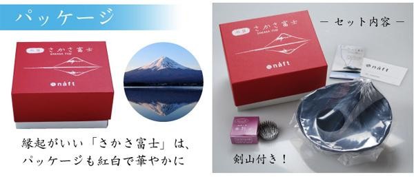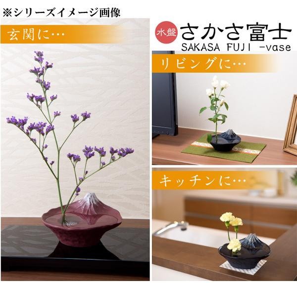 | 季節の花や枝を生けると、富士山のダイナミックな風景を凝縮したような世界が生まれます。水を張ると現れるさかさ富士に心が安らぎ、自然と笑みがこぼれることでしょう。 |