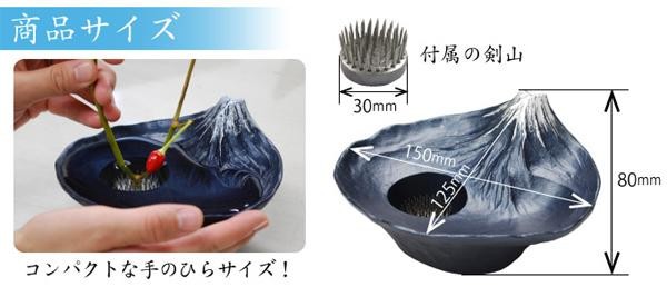 季節の花や枝を生けると、富士山のダイナミックな風景を凝縮したような世界が生まれます。水を張ると現れるさかさ富士に心が安らぎ、自然と笑みがこぼれることでしょう。 |