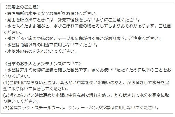 | セット内容 | 水盤本体・剣山・取扱説明書 |