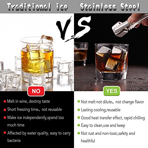 Tips: Perfect gift for your cocktail party. A practical, elegant and affordable gift for many occasions!!! The stone can be? put into all drinks such as cocktail,wine,whiskey,fruit juice,coke,beer and so on. Impress your friends and family - Surprise your guests when you serve up their favorite drinks with your stainless steel whiskey stones ! We recommend using 3 or 4 cubes in your drink.