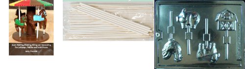 Cybrtrayd 'Farm Animal Lollies' Kids Chocolate Candy Mold with 50 4.5-Inch Lollipop Sticks and Chocolatier's Guide