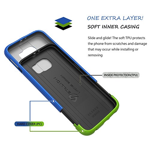 Samsung Galaxy S6 Case: Stalion® Slider Series Matte-UV Textured Sliding Style Protective Hard Case (Electric Blue/Lime Green)