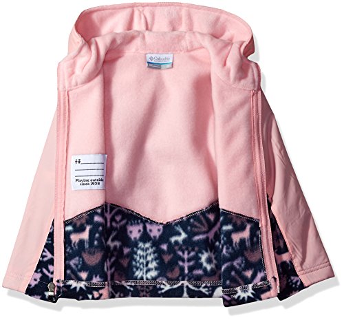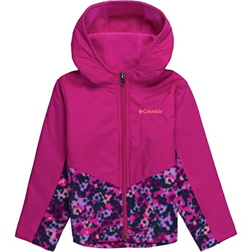 Put the Columbia Toddler Girls' Steens Mountain Overlay Hooded Fleece Jacket on the little one to make sure she's warm and cozy in cool temps, no matter if she's in a baby jogger with Mom or running errands around town with Dad. The 250g polyester fleece construction keeps her nice and toasty, while the Omni-Shield water-repellency lets her endure passing storms in dry comfort.Feature