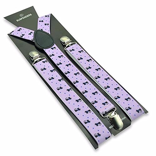 (Suspenders)/Accessories/Suspenders Cummerbunds/DIRECT FROM USA/Unisex Purple Kitty Cat Animal 1" Wide Clip On Elastic Suspenders Y-Back