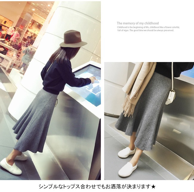 | 商品名 | Aラインニットスカート タイトルスカート ミモレスカート レディース ロングスカート リブ編み ニットボトムス 通勤通学 OL お呼ばれ 2017秋冬新作 |