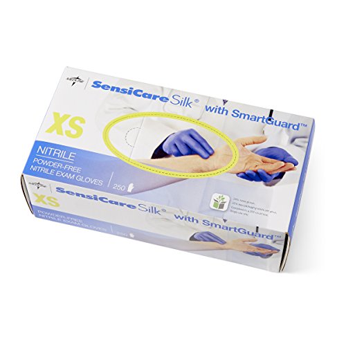 Medline MDS2583H SensiCare Silk Nitrile Exam Gloves with Smartguard Film, X-Small, Blue (Pack of 250)
