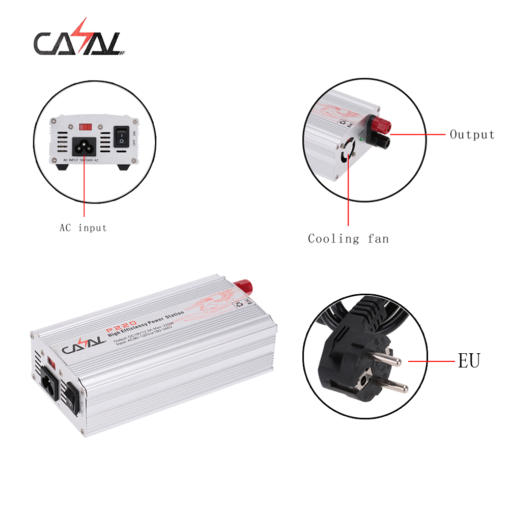 CASAL P220 converts standard household power 90-120V or 180-245V AC to 18V DC power and can supply up to 12.5 amperes of continuous power.