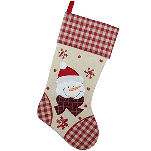 Northlight Burlap Embroidered Snowman Christmas Stocking with Red Gingham Cuff, 19", Brown