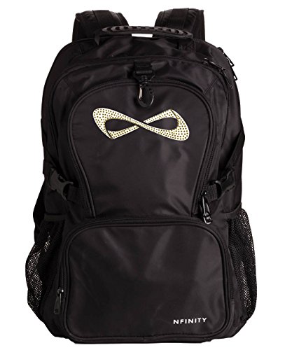-. Brand : Nfinity -. Color : Black -. Department : unisex-adult -. Feature : Lightweight 100% Nylon material with Air-mesh padding on back for added comfort and breathability / Large volume interior design with 3 compartments and a padded lap top sleeve / Features a large main compartment large enough to hold your shoes / Top grab handles and two water bottle holders / Detachable front pouch converts into a purse -. ProductGroup : Apparel -. ProductTypeName : LAGE -. Size : One Size -. Title : Nfinity Bling Backpack