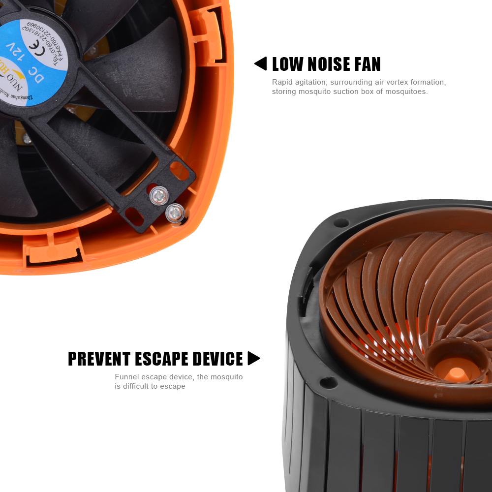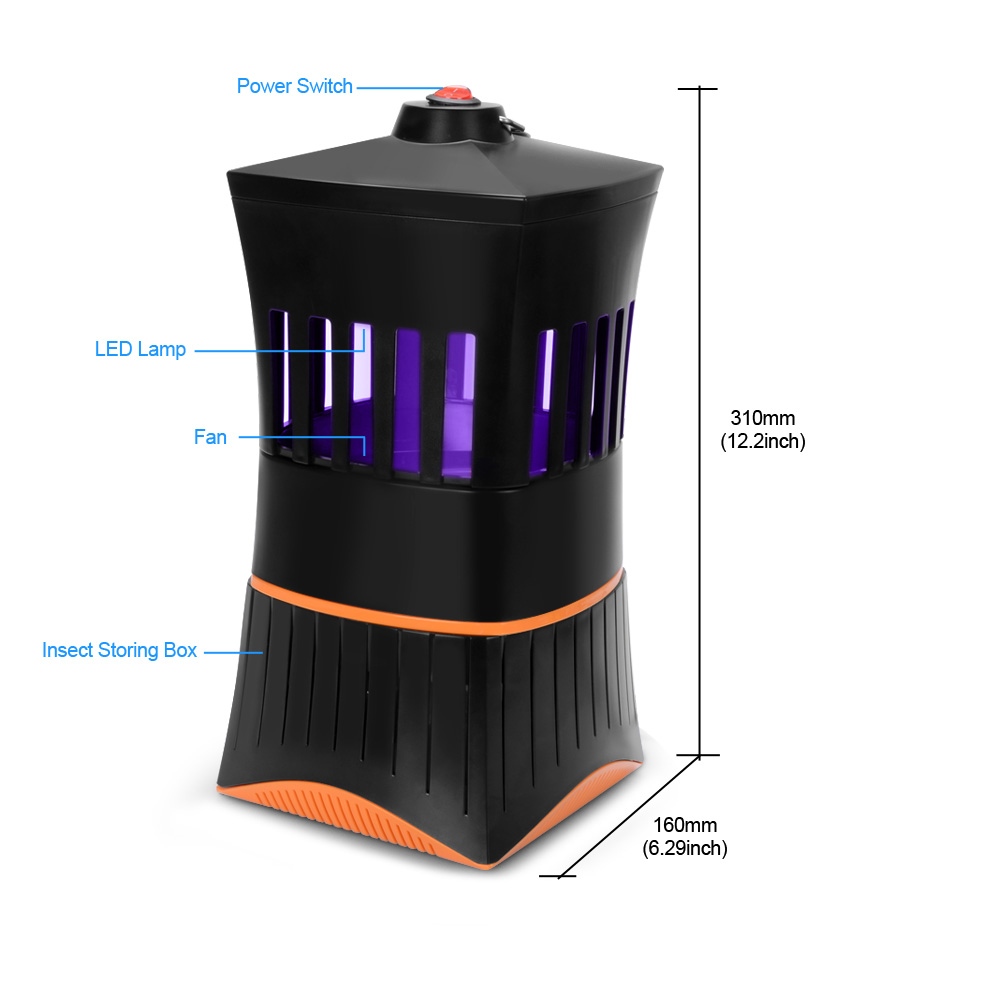 • Lure, Catch and Trap- 4 LED bubbles produce 360-400nm UV-A light extremely effective at luring mosquitoes, moths and other pests;