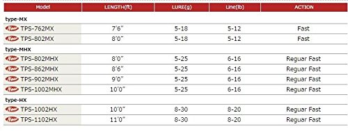 overall length (ft): 8 ' 6 " transit number (pcs): 2 led dimensions (cm): 133 prudent (g): 147 target diameter / diameter (mm):2.0/10.8 lures (g): 5-25 line (lb): 6-16 action RF 0