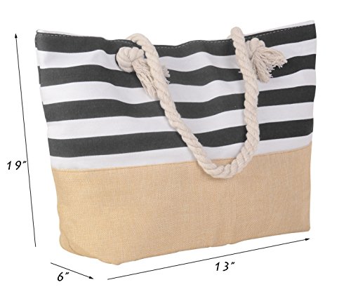 -. Title : Pulama Womens Beach Tote Canvas Shoulder Bag Wave Striped Anchor Summer Handbag Top Handle Bag Straw Beach Bag