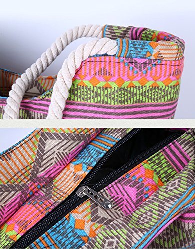 -. Feature : Demension:18"*12.5"*5.5" , enough to hold your snorkle mask, sun glasses,slippers. swimwear,snacks, drinks, sunblock ,towel and books. / Cotton String strap touchs your shoulder softly and gently,realax and massage your shoulders. / Unique and designed figure patterns P.R.Int, bright colors looking match the sunny summer and your pretty mood. / Lined with polyaster and zipper closures, keep your items away from sands/water/sunshine. Clean and secured. / Let's enjoy the beach times,pool times.picnic or any other family leisure times. Pack everything in one bag. Yeah!!