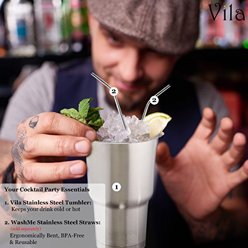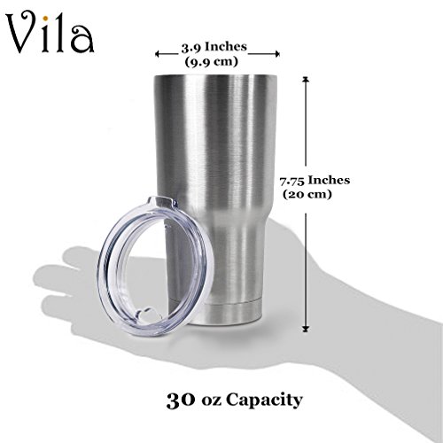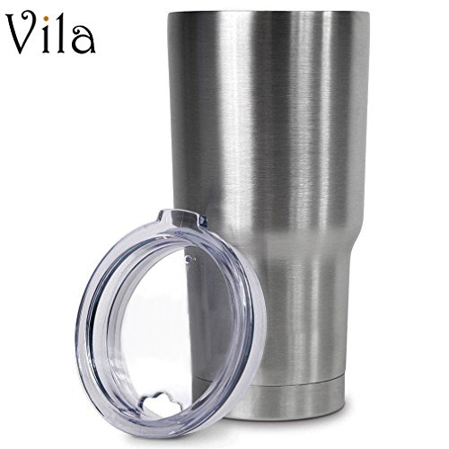 REMOVABLE LID FITS TIGHT TO SAVE YOUR DRINK FROM SPILLING --- To fully contain your favorite drink, the Vila 30oz Stainless Steel Tumbler is topped off with a shatterproof, dishwasher safe and completely BPA-free plastic lid. This crystal clear top securely stays in place that prevents accidental spills. For convenience, sip from the small drinking hole. As the lid is transparent, you can quickly see how much of your beverage is left.