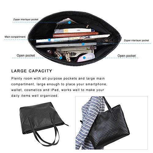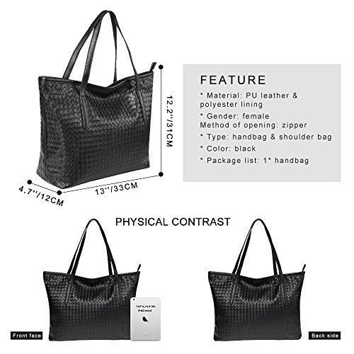 -. Feature : High-quality Material- Delicately crafted with superior PU leather, ultra soft, abrasion-resistant, scratch-resistant and durable, also comfortable to touch. / Weave Design- Fashionable appearance and simple outlook, highlights your fashion and good taste, makes you win a lot of admiration in the crowd. / Large Capacity- Plenty room with all-purpose pockets and large main compartment, large enough to place your daily supplies like smartphone, wallet, cosmetics, umbrella and iPad, effectively keep all the daily items in order without any mess. / Delicate Craft- High-quality zippers with premium hardware zipper heads, offers smooth glide without sticking even in the corner; also, with solid shoulder strap and exquisite sewing thread, provides added durability and comfort. / High Performance- Stylish and eternal classic, capable to make you become an attractive star in the street, be your necessary fashionable partner for any occasions, such as working, shopping and party.