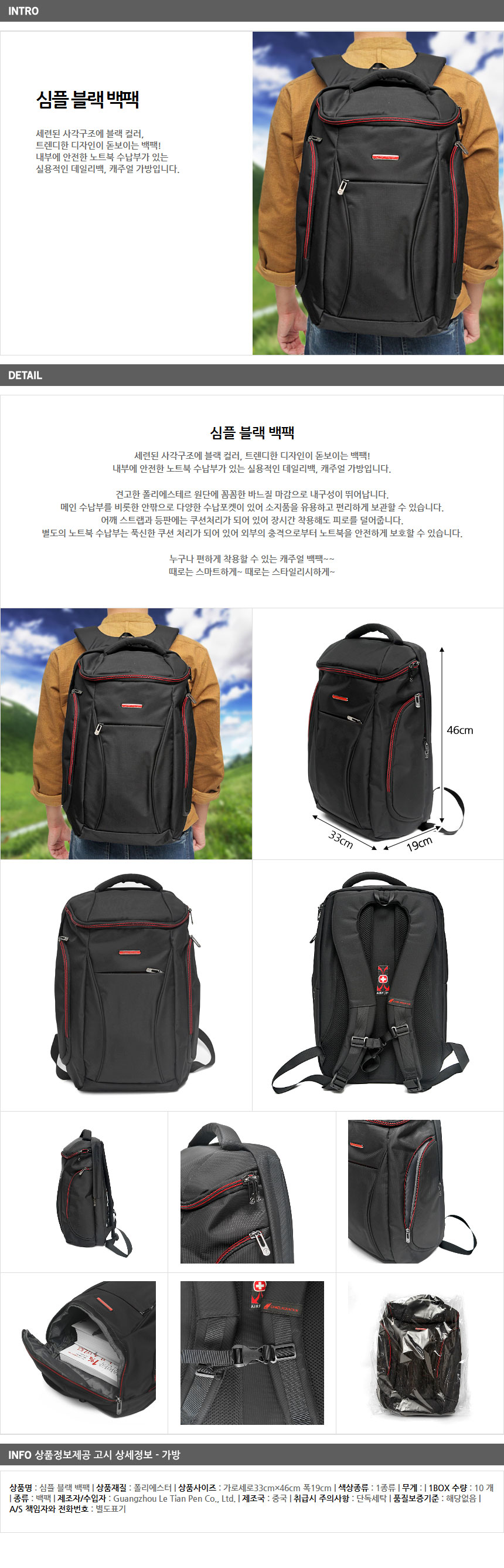 Simple Black Backpack Laptop Backpack