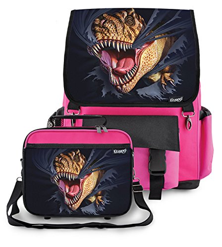 -. Brand : Kidaroo -. Department : boys -. Feature : Decorative Flaps On The Backpack & Lunch Box Are Interchangeable! (PATENT PENDING) / Backpack Has A Spacious Main Storage Compartment With A Large Padded Interior Pocket For A Small Laptop Or Large Tablet. Lots Of Pockets. / Thick Padded Back For Comfort With Adjustable Shoulder Straps. / Lunch Box Attaches To The Outside Of The Backpack With Durable Metal Clips And Comes With An Adjustable Tote Strap. / Backpack: 17" x 12" x 7" / Lunch Box 8.5" x 10" x 3.5" -. ProductGroup : Apparel -. ProductTypeName : LAGE -. Title : Kidaroo Tearing T-Rex Dinosaur School Backpack & Lunchbox for Boys, Girls, Kids
