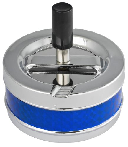 Visol Taz Blue and Silver Metal Air Tight Push Down Cigarette Ashtray