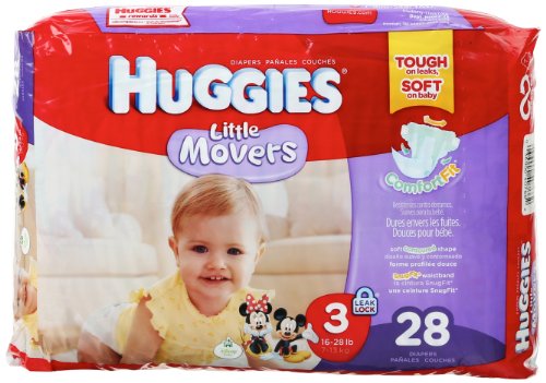HUGGIES Little Movers Diapers, Size 3, 28 Count