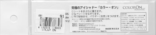 -. Feature : 究極のアイシャドウ「カラーオン」ならプロの様なアイメイクがたった30秒!! / カッコイイ!? 可愛い!? セクシー!? きっと毎日違うあなたに出会える。 / 「究極のアイシャドウ」「時短メイク」として注目度が急上昇中のインスタントアイシャドー「カラーオン」(読売TV「あさパラ!」、朝日TV「おはよう朝日です」など各局TV番組で紹介されました) / 使い方はとっても簡単! 「カラーオン」のシートをまぶたをやさしくおおって上から指でそっと馴染ませるだけ。あっという間にお好みのカラーが転写できちゃうお手軽なアイシャドウです。 / 商品内容:カラーオンシート 1枚(色が薄くなるまで何度もご使用できます)