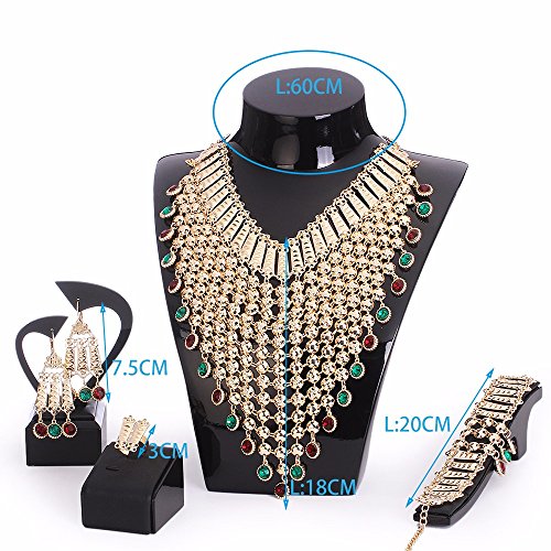 -. Feature : Africal Royal style Jewelry for Celebrition, Costume, Party, Wedding, Show / Jewelry Sets of necklace & bracelet & ring & one pair of earrings / Gold-plated is harmless and hypoallergenic for human / Smooth cutting technolgy for Crystal surface / Chain length: 23.62 inch, bracelet length: 7.88 inch