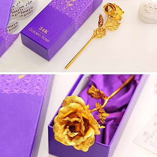Each rose is precisely hand crafted by skilled artisans, 24k gold rose take over 4 days handwork and 65 steps to make one piece. Made By the Highly Purified 24K 99.9% Gold. Unique long lasting luster. Brilliant and elegant. Without greeting cards and logo dust cloth is fake, ProCIV responsible for the quality of the Flowers, please distinguish it from another sales.