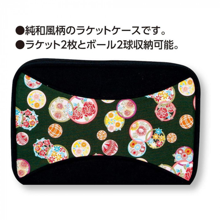 卓球のラケットケースはなかなかオシャレなものが見当たらない・・・。そんなあなたにオススメな和柄ラケットケースシリーズ。純和柄風のラケットケースにはラケット2枚とボール2球が収納可能。男女問わずお使いいただけるデザインです。