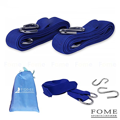 FOME SPORTS|OUTDOOR Heavy Duty Extra Long Hammock Tree Hanging Adjustable Straps for Portable Camping Hammocks Blue One Year Warranty