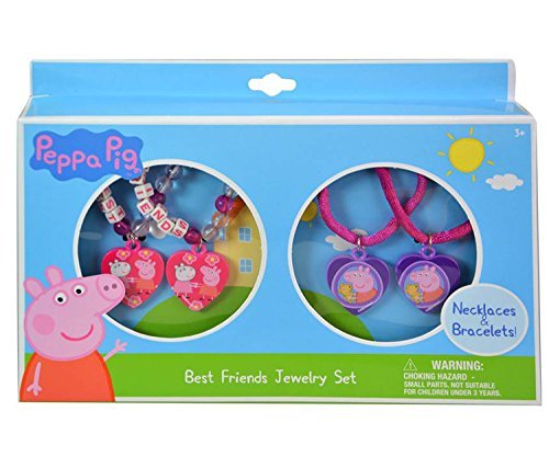 Studio : United Pacific Design Publisher : United Pacific Design Binding : Toy Product Description Show some love to your bestie with this Peppa Pig Best Friends Jewelry Set! Includes 2 matching sets of necklaces and bracelets with graphics of your favorite Peppa Pig characters. The necklaces feature initial cubes that spell out Best Friends. BFF for life! 0