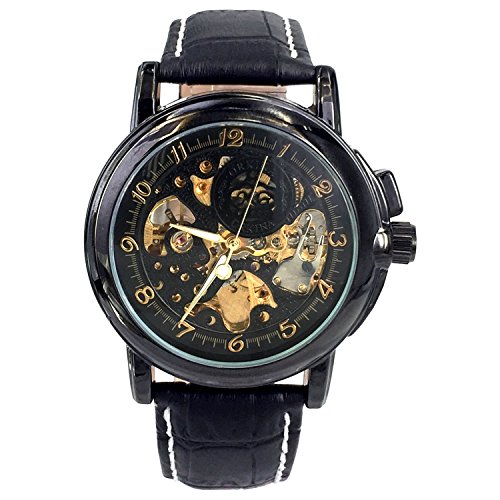-. Title : Chronomart (クローノーマート) 黒色 スケルトンダイヤル 自動機械式ムーブメント ブラウンレザーバンド 男性用腕時計 ORK-010 (並行輸入品)