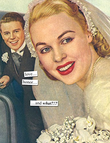 -. Binding : Office Product -. Brand : Anne Taintor, Inc. -. EAN : 0823398382493 -. Feature : Our gorgeous new cards feature full-color front and back with a spot of color inside. P.R.Inted with vegetable-based ink on FSC-Certified uncoated stock using 100% wind-generated electricity and sleeved with color envelopes. / Features the Phrase: Love... Honor... ... And What.. / Measures: 4 1/4 x 5 1/2 inches / By Anne Taintor. Celebrating over 25 years of making smart people smile. -. Label : Anne Taintor -. Manufacturer : Anne Taintor -. MPN : 38249 -. NumberOfItems : 1 -. PackageQuantity : 1 -. PartNumber : 38249 -. ProductGroup : Office Product -. ProductTypeName : PAPER_PRODUCT -. Publisher : Anne Taintor -. Studio : Anne Taintor -. Title : Anne Taintor Wedding Greeting Card - Love Honor And What?? -. UPC : 823398382493