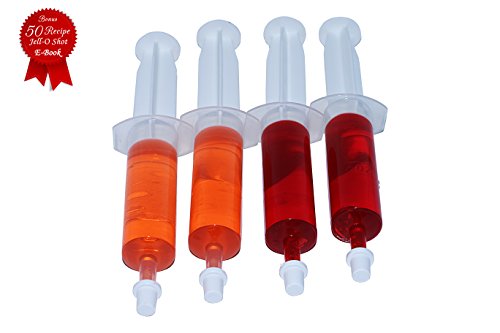 Party Shots 50 Pack Jello Shot Syringes (Plus 50 Delicious Jello Shot Recipe E-Book) Use To Make Tasty 1.5 Ounce Syringe Shots, Reusable Perfect for Halloween, Tailgates, and Bachelor Parties