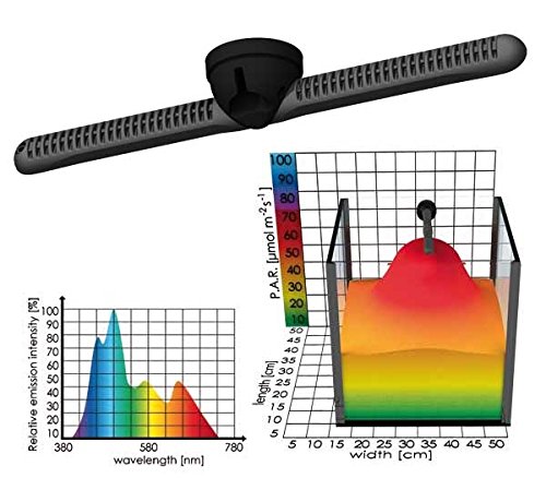 LED Full Spectrum 8850, includes magnet holder for 3/8" thick glass, plastic waterproof body (submersible), integrated lens, Nichia and Osama LED's, 26W peak performance, automatically adjusts for temperature compensation, color can be adjusted between 5000-25000K, ideal for Nano reef aquariums up to 18" cubed, multiples can be used on larger aquariums.Feature