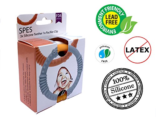 -. Title : Teether - Best Baby Teether - This SPES Teether has the SPES Raised Edge Design that Allows Your Baby to Soothe the Pain with Ease! They're BPA Free and FDA Approved. INCLUDED:Pacifier/Teether Clip.