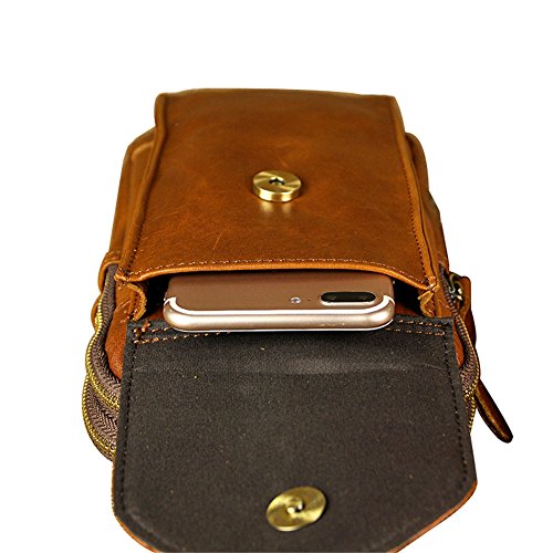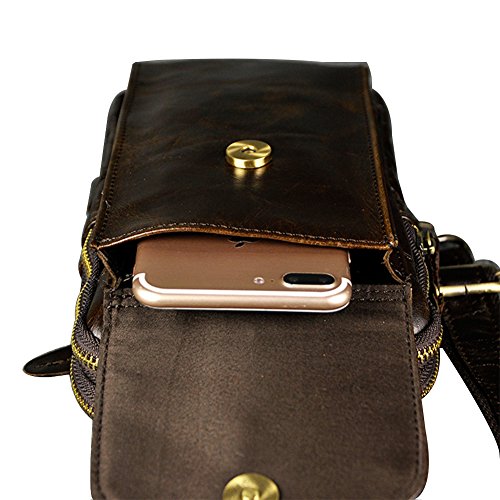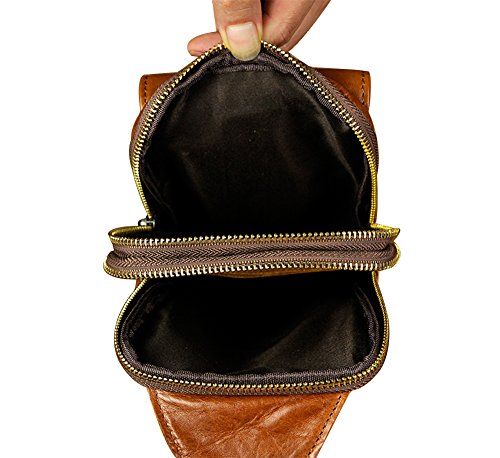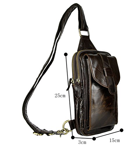 -. Feature : Size:15cm(L) x 3cm(W)x 25cm(H) / 5.9*1.2*9.8inch / Material: 100% genuine leather / Structure: 2 main zipper pockets,1 front button pocket, 1 zipper pocket on the back of the pouch / 4 Ways to use: Shoulder bag/ crossbody bag/ chest bag/ sling bag / A great daypack for school, dating, shopping, traveling or other outdoor activities