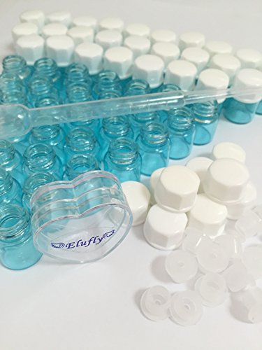 Elufly 1/4 Dram Sky Blue Glass Vial 1ML Oil Bottles- Screw Cap +Orifice Reducer+Bottles+White Cotton Piece 60-120 Units (60, Sky Blue)
