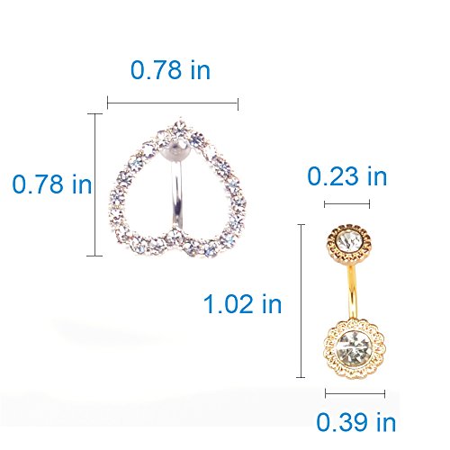 (Onlydroid)/Accessories/Belts Buckles/DIRECT FROM USA/Onlydroid Navel Pack 316 Stainless Steel 1.6125/8mm Gold Plated and Non-plated with Clear Gems