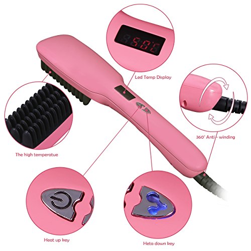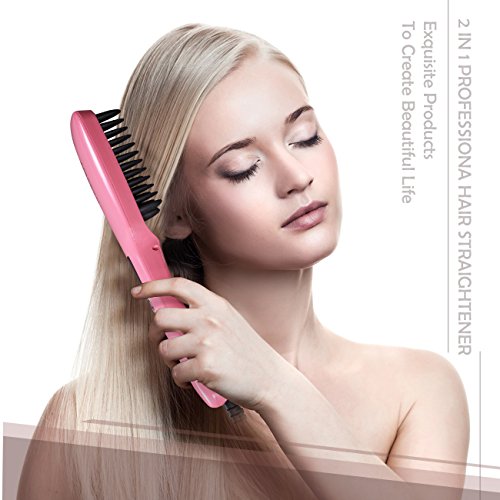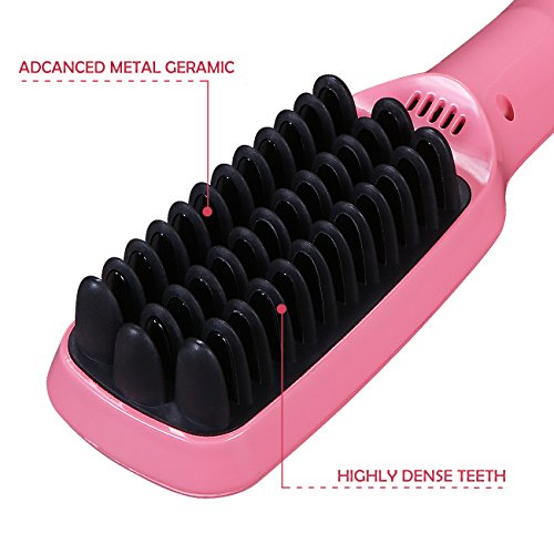 - ✤ ANTI SCALD TEETH DESIGN: Merge the ceramic iron straightener, detangling brush, anion hair massager together, gives you a comfortable experience during straighten your hair.